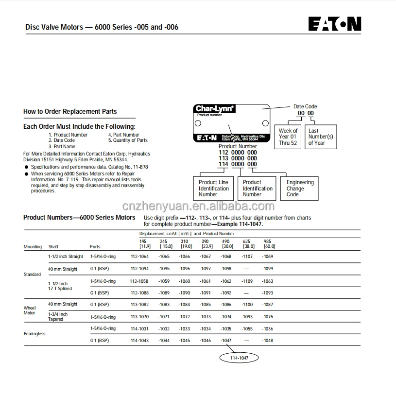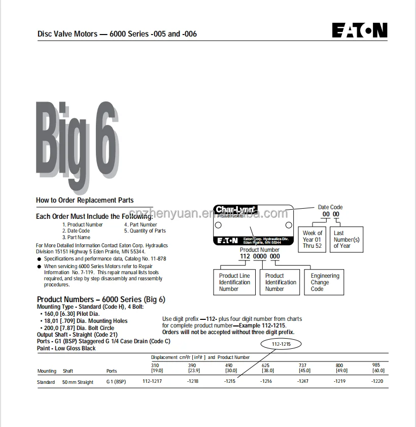 104 129 Series Char Lynn orbit Motor H-170DA2-J 104-1611-006 S-160AA2-K 104-1023-006 129-0018-002 282-1023-003 2-290AA20-E