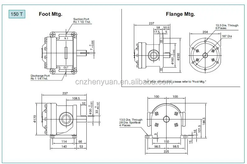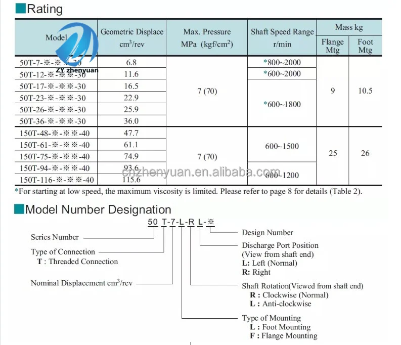 – Flow parameters: Rated displacement 150 mL/r (corresponding to the model marked “150T”), rated flow 225 L/min at rated speed 1500 r/min; The speed adaptation range is 800-2000 r/min, and the flow rate is linearly matched with the speed (120 L/min at 800 r/min and 300 L/min at 2000 r/min). The variable adjustment range is 15%-100% (33.75-225 L/min).