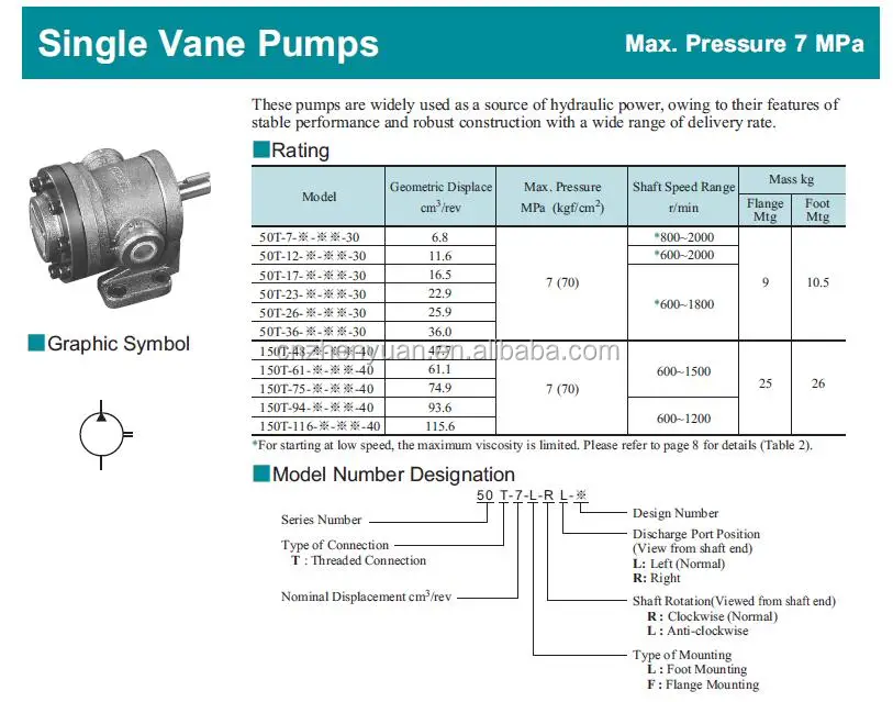 150T-61-FR-PA 50T 150T 50T-30 150T-94 150T-61 High Pressure Displacement Hydraulic Vane Pump