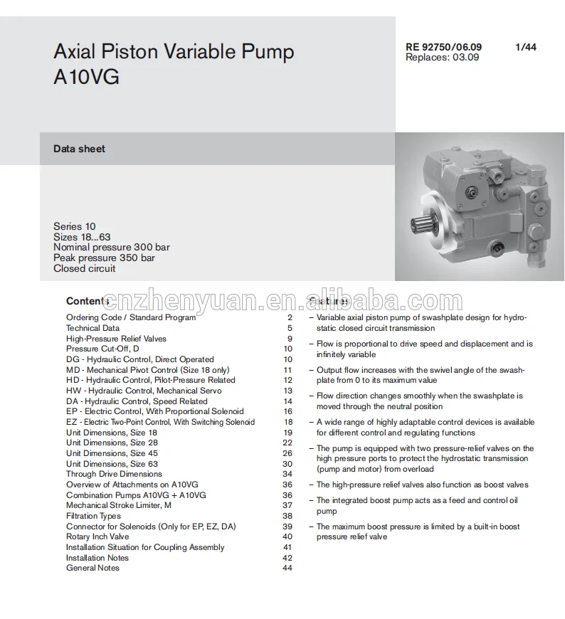 Hydraulic Pump A10VG A10VG18 A10VG45 A10VG63 A10VG28 Series A10VG45HWDL2/10R-NSC10F015S-S High Pressure Piston Pump