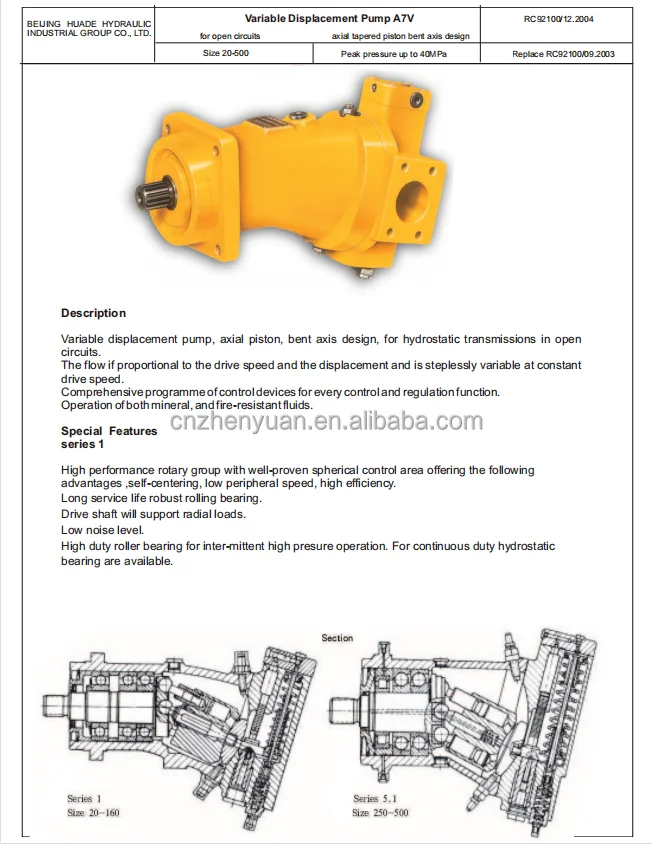 A7V A7V20/28 A7V40/55 A7V58/80 A7V78/107 Series A7V20LV1RZFOO Swash Plate Axial Piston Hydraulic Pump