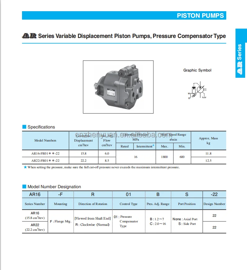 AR Series AR16-FR01C-22 AR16-FR01B-20 AR22-FR01B-20 Hydraulic Piston Pump AR16 AR22