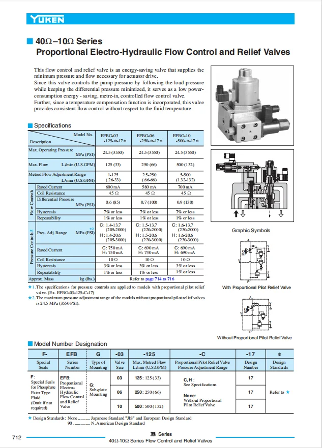 -EFBG-03-125-C-20T233N: No temperature compensation model, suitable for stable working conditions at normal temperature (fixed hydraulic stations in workshops), with slightly lower control accuracy (flow repeatability accuracy ≤2%), and a cost 25% lower than the original model.