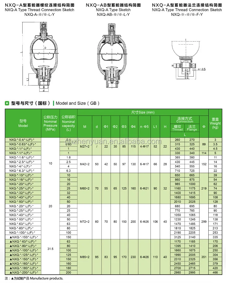 | Model Number | NXQ-A-0.4L, NXQ-A-0.63L, NXQ-A-1L, NXQ-A-1.6L, NXQ-A-2.5L, NXQ-A-4L, NXQ-A-6.3L, NXQ-A-10L |