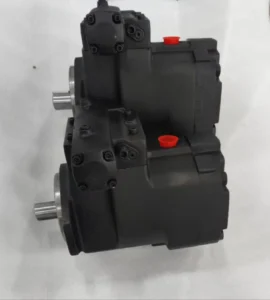 This plunger pump is an open-circuit swash plate axial plunger pump. Its core components include the drive shaft, cylinder block, plunger, swash plate, oil distribution plate and load-sensitive control valve group. During operation, the prime mover drives the drive shaft to rotate the cylinder block. Under the action of centrifugal force and the return disc, the spherical end of the plunger inside the cylinder block always closely adheres to the surface of the swash plate. Due to the inclination Angle between the swash plate and the cylinder block axis, when the plunger rotates with the cylinder block, it moves back and forth along the cylinder bore. When the plunger rotates to the high side of the swash plate, it is squeezed and moves towards the interior of the cylinder block. The volume of the sealed cavity decreases, and the oil pressure increases. The oil is then discharged to the system through the oil distribution plate’s oil discharge window, completing the oil pressure. When the plunger rotates to the lower side of the swash plate, it extends outward under the action of the return force, increasing the volume of the cavity and creating a vacuum. The oil in the oil tank is then drawn in through the suction window of the oil distribution plate, completing the oil suction process.