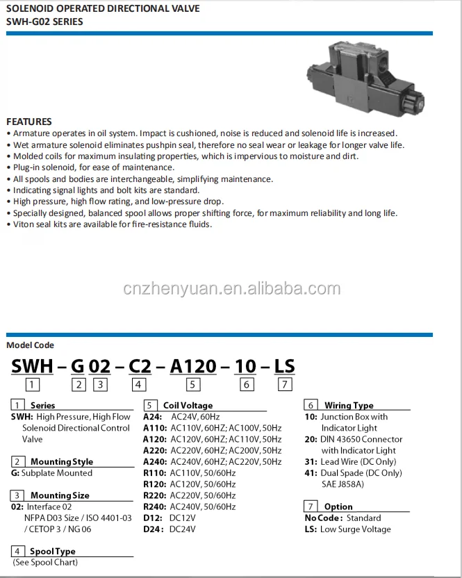 SWH-G01 SWH-G02 SWH-G03 SWH-G06 Series Hydraulic Check Solenoid Valve SWH-G02-C4-A110-20 SWH-G02-C2-A110-20 SWH-G02-D2-D24-10